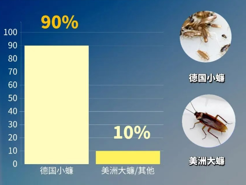 据监测数据显示,南方地区到2012年,德国小蠊占比已达到90%以上。以广州市为例,2006年起,广州市城区蟑螂优势种群,已由美洲大蠊转为体型小的德国小蠊。